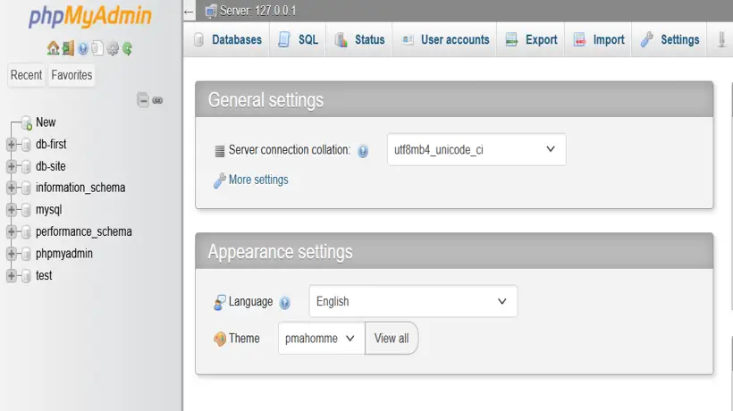 http://localhost/phpmyadmin